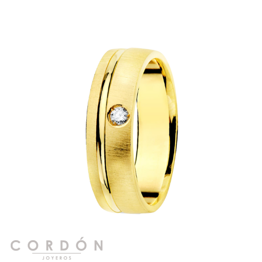 Alianza Oro Amarillo 18K 5.5mm Mate y Brillo, Diamante 0.045CTS