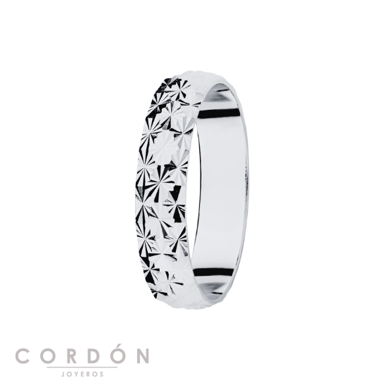 Alianza Oro Blanco 18K 4mm Diamantada