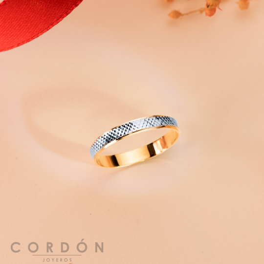 Te presentamos la Alianza de Oro Bicolor de 18K Tallada y Brillo de 3mm. Una joya de gran calidad a la altura de tu gran día. Con un suave acabado rugoso en su superficie tallado de terminación brillante en oro blanco y los bordes brillantes en oro amarillo, este anillo de 18 quilates es uno de nuestros diseños estrella más originales. Merece la pena verlo en directo. Tiene una anchura de 3mm y su interior es plano.