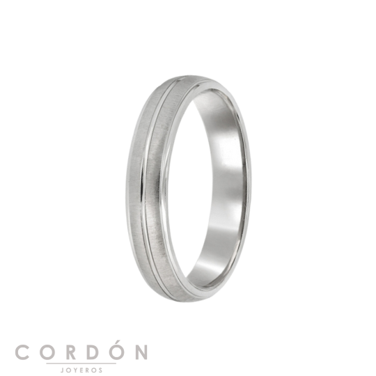 La Alianza de Plata Satinada y Brillo para hombre y mujer de 4mm de anchura. Esta joya tiene un acabado mate satinado y brillante en su delgada ranura, además tiene un interior bombeado para mayor comodidad. El día de tu boda, celebrar tu compromiso con este exquisito anillo de boda. Disponible de la talla 08 a la 30.