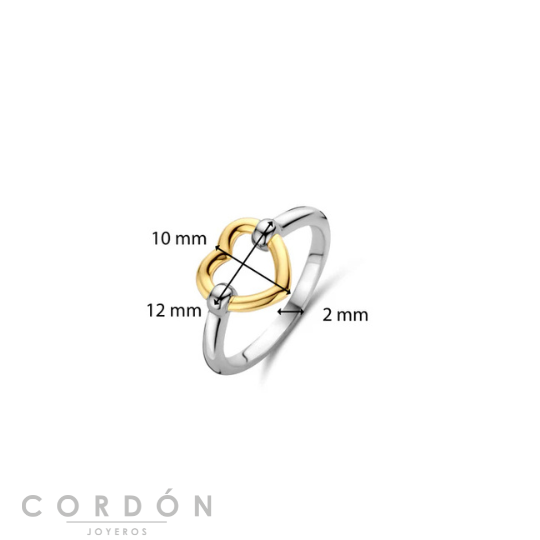 Este anillo de corazón chapado en oro 12291SY de TI SENTO presenta una delicada forma de corazón como pieza central. El anillo está elaborado en plata de ley 925 de la más alta calidad y chapado en oro amarillo. Decora tus dedos con un poco de amor, ¡nunca hay demasiado amor para traer! Apila este anillo en forma de corazón con algunos anillos básicos o con otros anillos originales para hacer una declaración.
