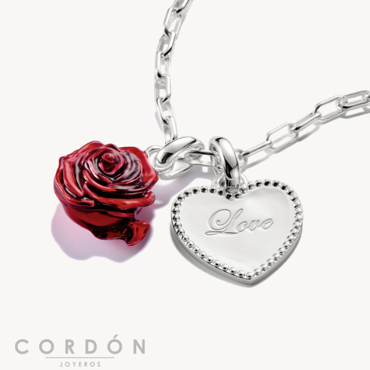 Te presentamos el Colgante Charm Rosa Roja CC1263-007-10. Demuestra que las rosas son tus flores favoritas con este charm de plata 925 reciclada. Está diseñado en forma de flor de rosa con aspecto 3D y pétalos detallados. El esmalte rojo aplicado a mano completa su aspecto auténtico. El charm de rosa tiene un ojal de filigrana para que pueda llevarlo fácilmente en pulseras y collares. Con colgantes adicionales, puede crear looks individuales que cuenten su historia personal.