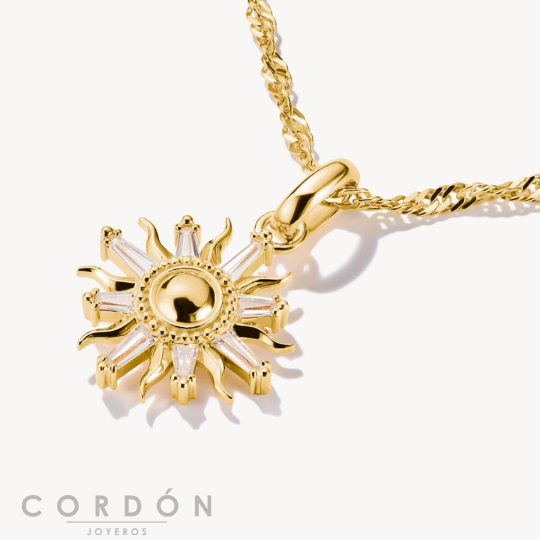 - Charm de sol fabricado en plata 925 reciclada con baño de oro de 18k