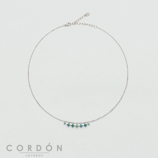 Collar corto de plata de ley y multi pampillas de colores. Una propuesta que aporta luz y color a tus looks de una forma sutil y sofisticada.