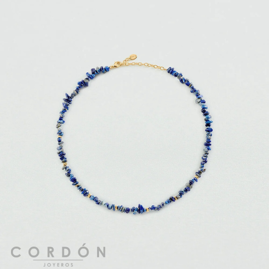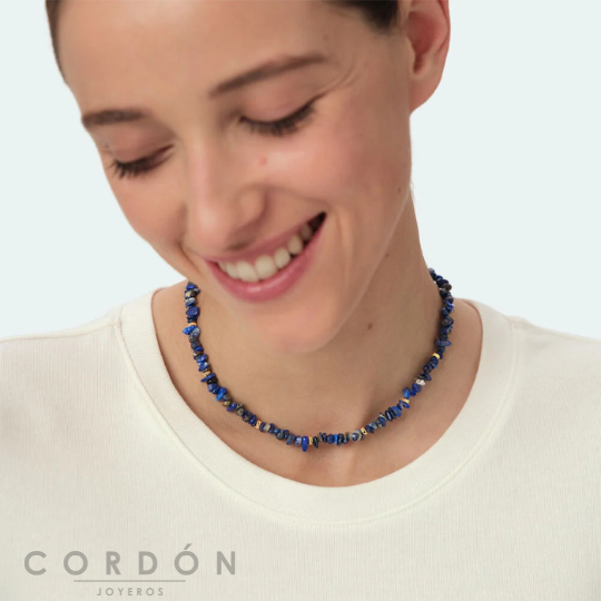 Collar corto con piedras naturales, disponible en rojo y azul. Es la opción perfecta para lucir durante toda la temporada y dar un toque estival a todos tus looks. Esta joya mide 375 mm con un alargo extra de 50 mm.
