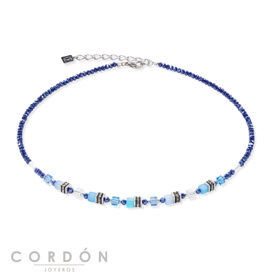 Collar Coeur de Lion 4565100700 azul Mini Cubes combina elementos de color azul profundo con brillantes cristales de Swarovski y elementos de acero inoxidable en plata. El equilibrio perfecto entre minimalismo y color, ideal para un look relajado y elegante.