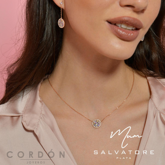 Collar de Salvatore Plata 211C0039 Rosette para mujer fabricado en plata bañada en oro rosa compuesta por una fina y elegante cadena que da lugar a un colgante en forma redonda con circonitas multicolor. Su cierre es de mosquetón ajustable.
