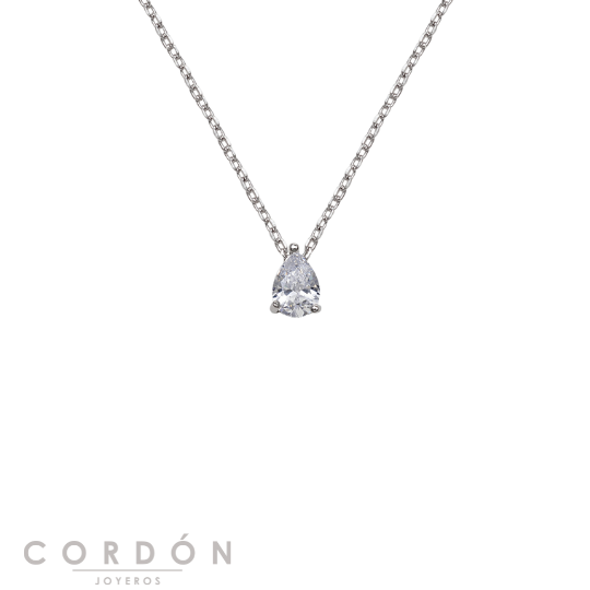 Collar de Cordón Joyeros para mujer de la Colección Esenciales con Lágrima Circonita 5x7mm, fabricado en plata 925 bañada en rodio, presenta un diseño de una Circonita en forma de Lágrima con tres garras. Su cierre es de mosquetón.