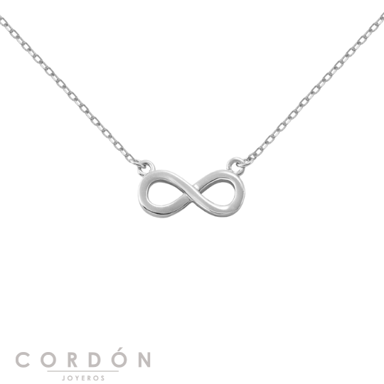 Collar de Cordón Joyeros para mujer de la Colección LOVE Infinito, fabricado en plata 925 bañada en rodio, presenta un diseño de un Infinito pequeño liso. Su cierre es de mosquetón.