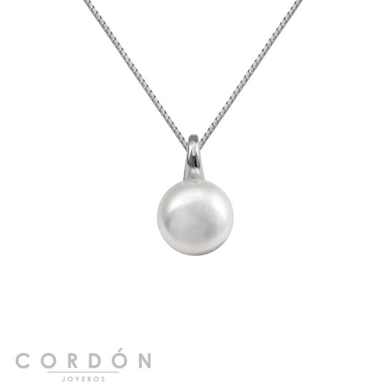 Collar de Cordón Joyeros para mujer con Perla Natural de 10mm, fabricado en plata 925 bañada en rodio, presenta un diseño de una Perla blanca totalmente sencilla. Su cierre es de mosquetón.