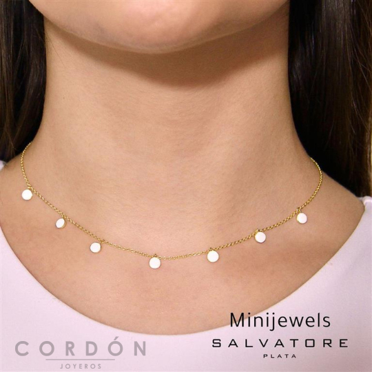 Collar de Salvatore Plata 213C0133 Minijewels para mujer fabricado en plata compuesta por una fina y elegante cadena con chapitas en Esmalte Blanco y con Baño de Oro 18K. Su cierre es de reasa ajustable.