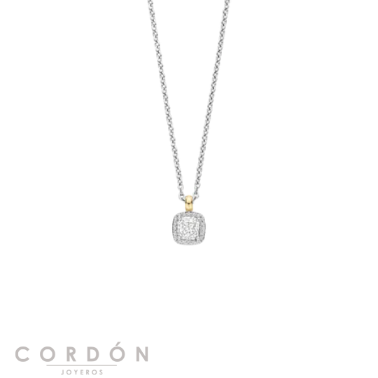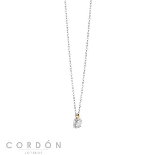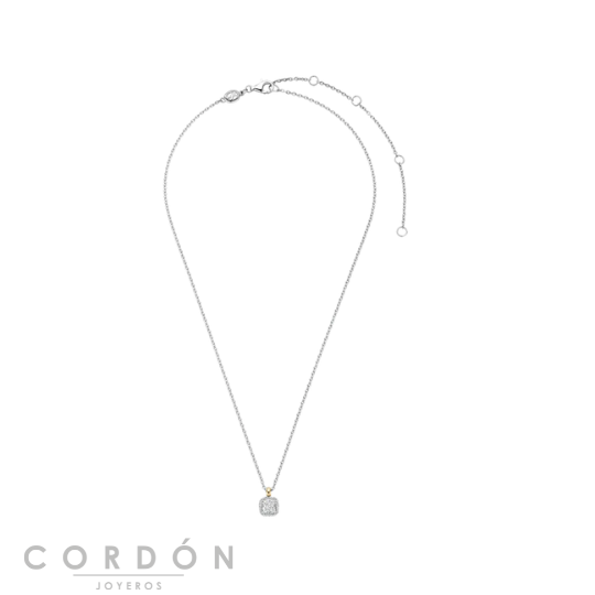 Eleva la elegancia cotidiana con este collar con colgante de plata chapada en oro TI SENTO 34103ZY. Una pieza central de circonita cúbica de talla cojín está rodeada por un delicado pavé de piedras blancas brillantes, creando un refinado juego de profundidad y brillo. El colgante cuelga de un asa chapado en oro amarillo pulido, suspendido en una fina cadena de plata esterlina para un suave contraste. Elaborado en plata de ley 925 de primera calidad y acabado con baño de oro amarillo y rodio de grado platino, este collar atemporal brilla con luz desde todos los ángulos. Su silueta compacta de 7 mm ofrece un glamour sutil.