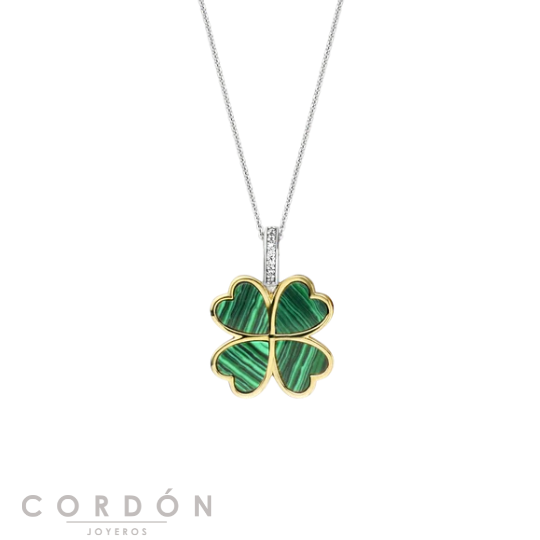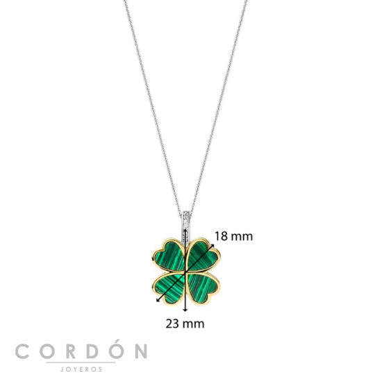 Este colgante de trébol chapado en oro TI SENTO 6821MA está elaborado en plata de ley 925 de la más alta calidad y bañado en oro amarillo. Este opulento trébol tiene un color verde malaquita. Su ojo corto hace alarde de un brillante pavé de piedras de circonita cúbica blanca (CZ). Este colgante peculiar es el complemento perfecto para cualquier estilo clásico. La suerte seguramente estará de tu lado con esta pieza lúdica.