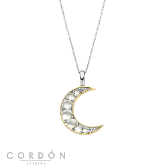Este colgante de luna dorada TI SENTO 6824MW se destaca con piedras de nácar que brillan en un engaste radiante. El colgante está hecho de plata esterlina 925 de primera calidad y luego se baña en oro para un toque cálido y lujoso. Las piedras de nácar brillantes crean un efecto encantador, reflejan la luz y centellean. Lleva la mística encantadora de la luna contigo a todas partes. Con este irresistible colgante de luna femenina, seguramente harás una declaración.