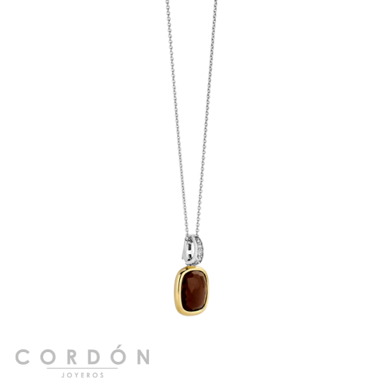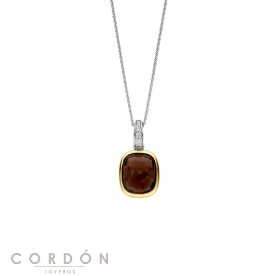 Añade profundidad cálida con este colgante de plata chapado en oro TI SENTO 6852SQ. Elaborada en plata esterlina 925, la forma alargada de la almohada sostiene una piedra translúcida de color marrón ahumado, rica en tono y suavemente facetada para reflejar la luz. Un bisel chapado en oro amarillo enmarca la piedra con una calidez sutil, mientras que el fardo chapado en platino—engastado en pavé con circonia cúbica blanca de corte brillante—añade un brillo refinado encima.