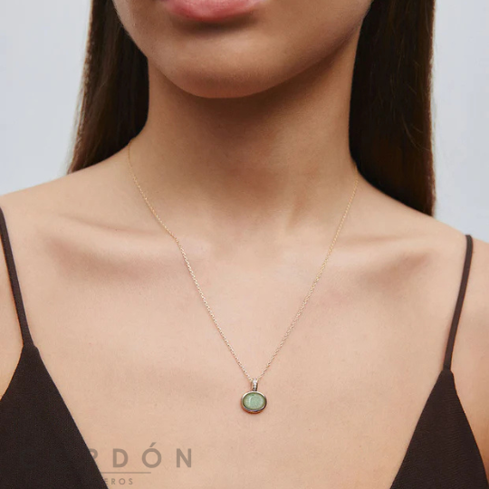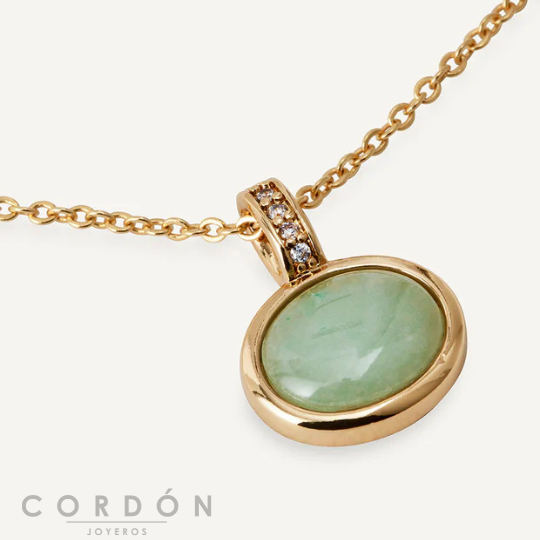 Te presentamos el Collar X4832940 Olive, bañado con una gruesa capa de oro macizo de 18 kt, lo que garantiza una mayor durabilidad. Destaca por su piedra de aventurina en tono verde, que aporta un aire de sofisticación en clave neutra. Engastado con circonitas blancas. Tiene una longitud de 40 cm + 6 cm de cadena ajustable.