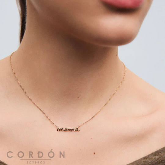 Te presentamos el Collar X7801238A Mama, de plata de ley 925 bañado con una gruesa capa de oro macizo de 18 kt, lo que garantiza una mayor durabilidad. Tiene una longitud de 38 cm + 5 cm de cadena ajustable.