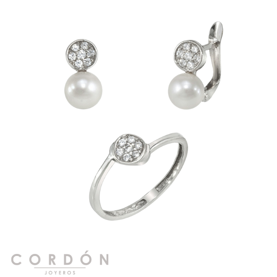 Conjunto Comunión Oro Blanco 18K Perlas y Circonitas