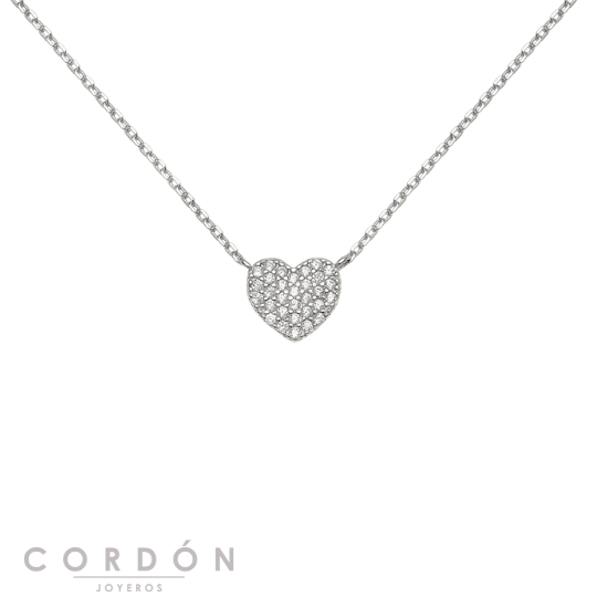 Collar de Cordón Joyeros para mujer de la Colección LOVE Corazón Circonitas, fabricado en plata 925 bañada en rodio, presenta un diseño de un Corazón y con Circonitas. Su cierre es de mosquetón.