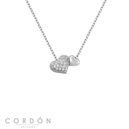 Collar de Cordón Joyeros para mujer de la Colección LOVE Corazón Doble Circonitas, fabricado en plata 925 bañada en rodio, presenta un diseño de dos Corazones y con Circonitas. Su cierre es de mosquetón.