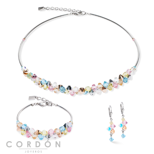 Los cristales Swarovski de color pastel y talla rombo crean un juego de colores brillantes con cada movimiento, que se ve particularmente moderno en combinación con acero inoxidable brillante. El equilibrio perfecto entre ligereza y sofisticación.