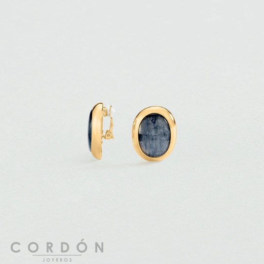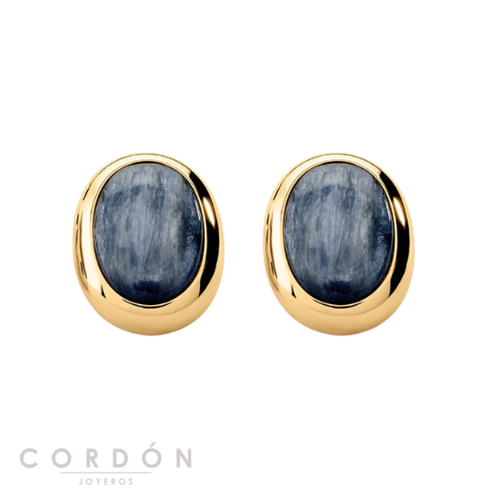 Pendientes de botón de nuestra colección RIVIERA, diseñados en París, fabricados en latón dorado de 750/1000 (18 quilates) y adornados con cianita. Esta colección icónica realza el esplendor de las piedras naturales.