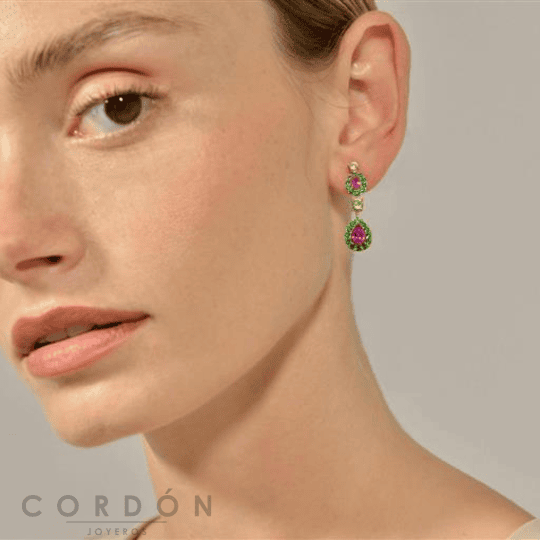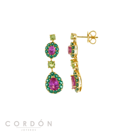 Pendientes de Salvatore Plata 136A0745 Vibrant para mujer fabricado en plata bañada en Oro compuesta por Rubí, peridoto y nano verde sintéticos. Su cierre es de presión.