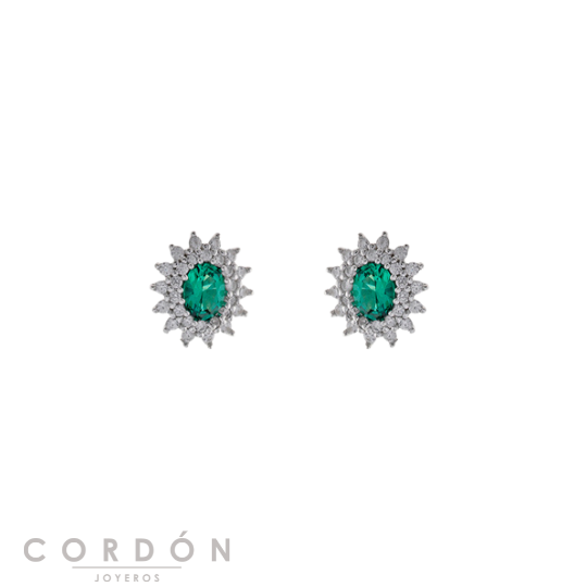 Pendientes de Salvatore Plata 136A0769 Crown para mujer fabricado en plata bañada en Rodio compuesta por Circonitas Blancas y Esmeralda. Su cierre es de presión.