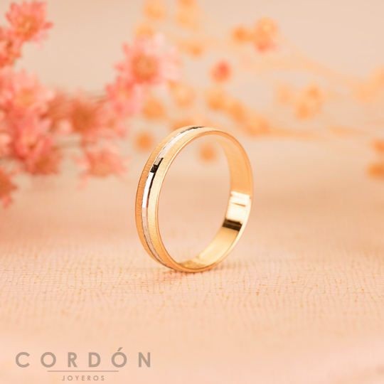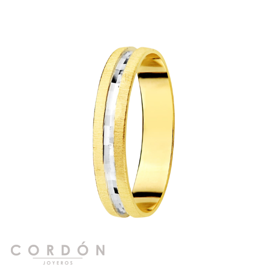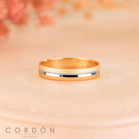 Alianza Oro Bicolor 18K 3.5mm Tallada y Mate