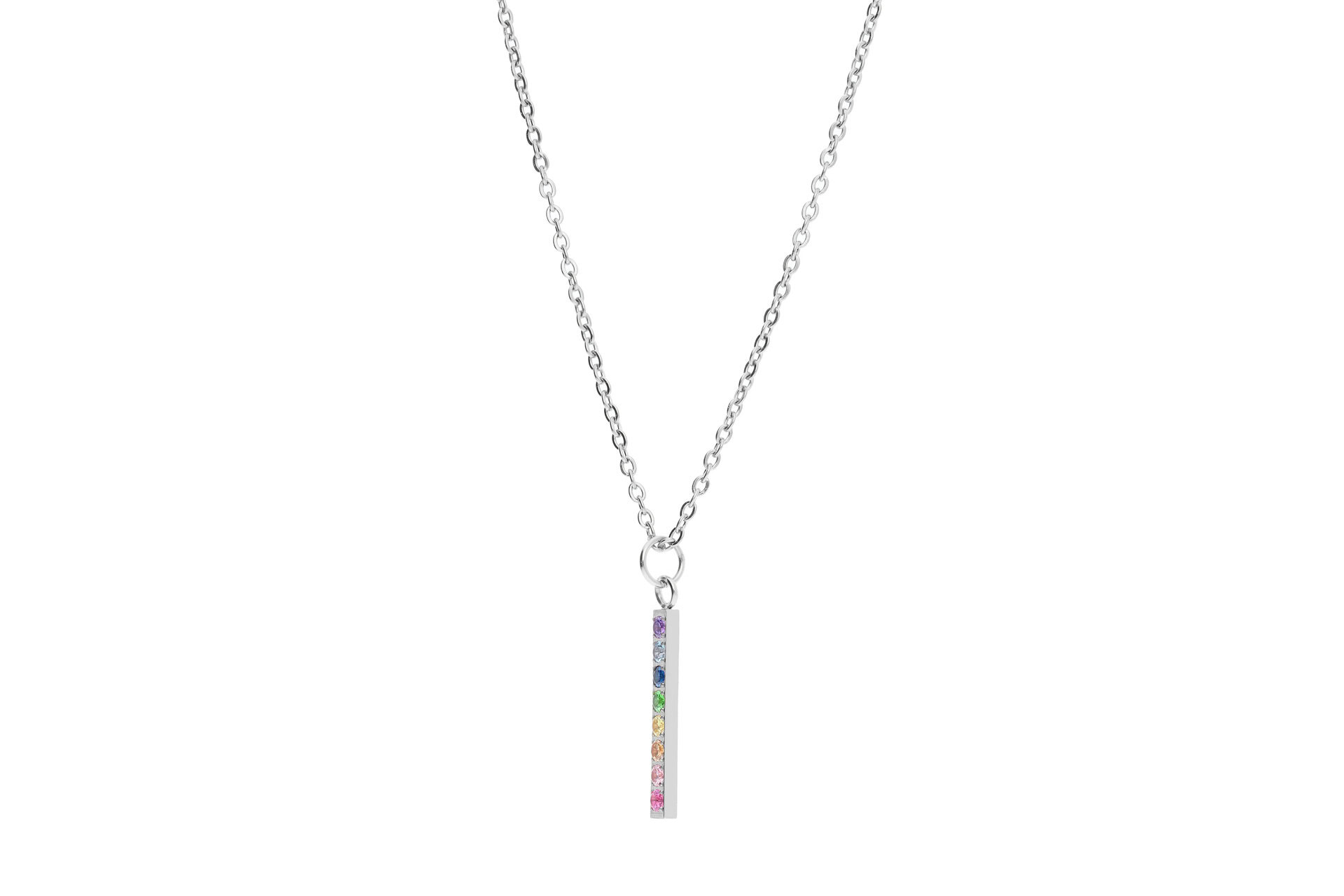 Collar Eternity en Acero con acabado Rosado o Plata con circonitas multicolor de la casa QUDO. Te presentamos este colorido y bonito collar a conjunto con el anillo y colgante Eternity.