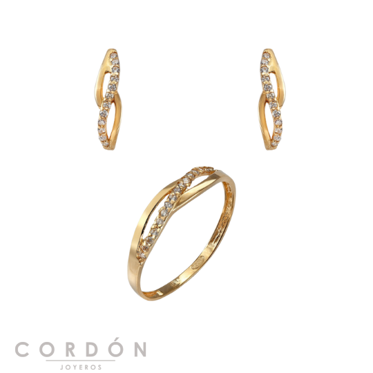 Conjunto Comunión Oro 18K Circonitas Entrelazado