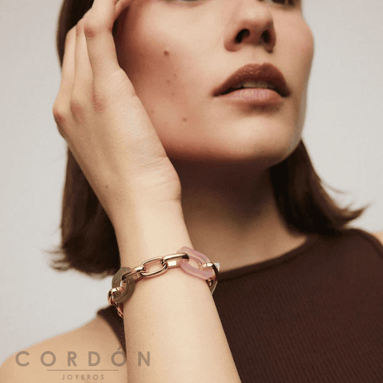 Te presentamos la Pulsera X9668718 Carey, Pulsera Colección Eva chapado en Oro 18kt con eslabones de acetato multicolor. Un clásico reinventado gracias a su moderno diseño.