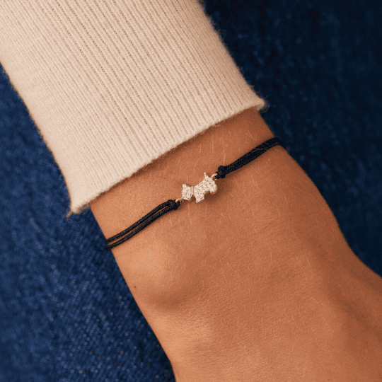 Te presentamos la Pulsera en Cordón negro bicolor de plata de ley con baño de oro de 18k y Scottie con circonitas de la Casa de Agatha Paris modelo 02490067-879-TU. Revisitamos un best seller clásico de nuestra firma con una propuesta sutil y muy actual. Si eres fan de nuestro Scottie, esta pulsera va a ir directa a tu wishlist, no te quedes sin ella.