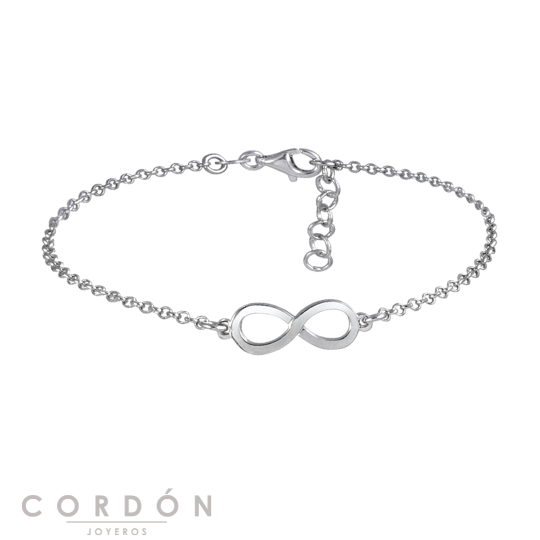 Pulsera de Cordón Joyeros para mujer, Infinito fabricado en plata 925 bañada en rodio, presenta un diseño de un Infinito liso. Su cierre es de mosquetón.