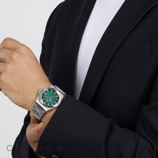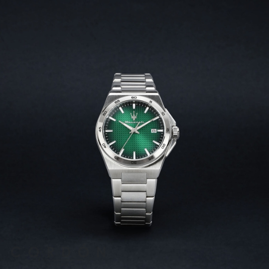 Equipado con movimiento de tres agujas con fecha (3H Date), garantiza precisión y fiabilidad en el día a día. Su diseño destaca por la esfera verde con el logotipo del tridente en la parte superior central, aportando un toque distintivo y sofisticado.