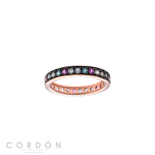 Anillo de Salvatore Plata 234S0068 Utopia para mujer fabricado en plata bañada en Oro rosa y rutenio compuesto por circonitas multicolor brillantes.