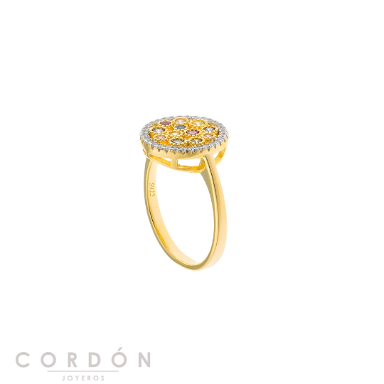 Anillo de Salvatore Plata 211S0255 Rosette para mujer fabricado en plata bañada en Oro compuesto por circonitas multicolor brillantes.