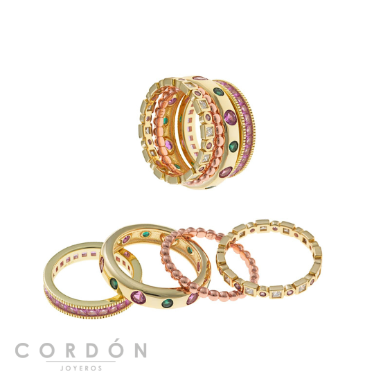 Los icónicos anillos sueltos para combinarlos libremente a tu gusto, junto con los populares sets de 4 anillos ya combinados. También encontrarás pulseras tipo caña y pendientes de aro a juego, perfectos para completar cualquier look con un toque fresco y audaz.