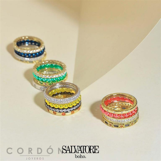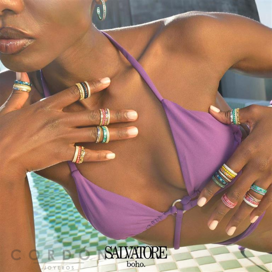 La nueva colección Boho para esta primavera-verano destaca por sus chapados en intensos colores como verde agua vibrante, azul hipnótico, amarillo y fucsia atrevido, las joyas combinan estos tonos con circonitas talla princesa en diversos colores, creando piezas únicas, llenas de brillo y personalidad.